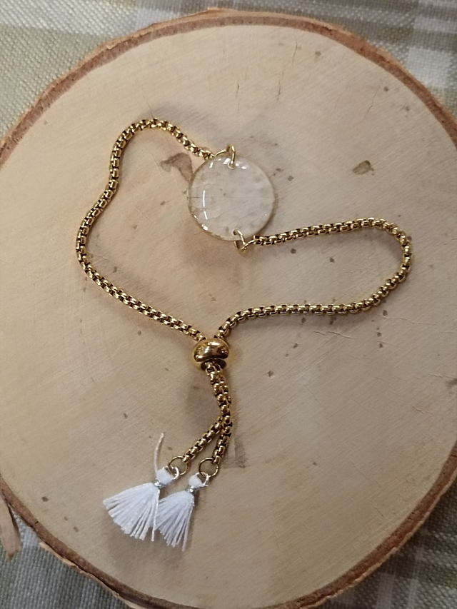 Bracelet avec pompons blancs et pétale blanc