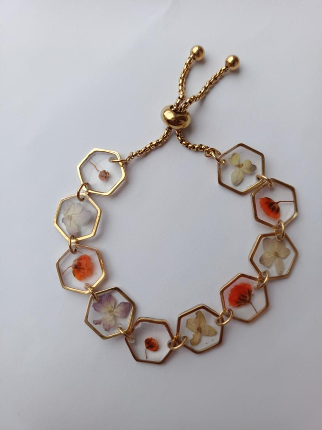 Bracelets fleurs séchées oranges et blanches