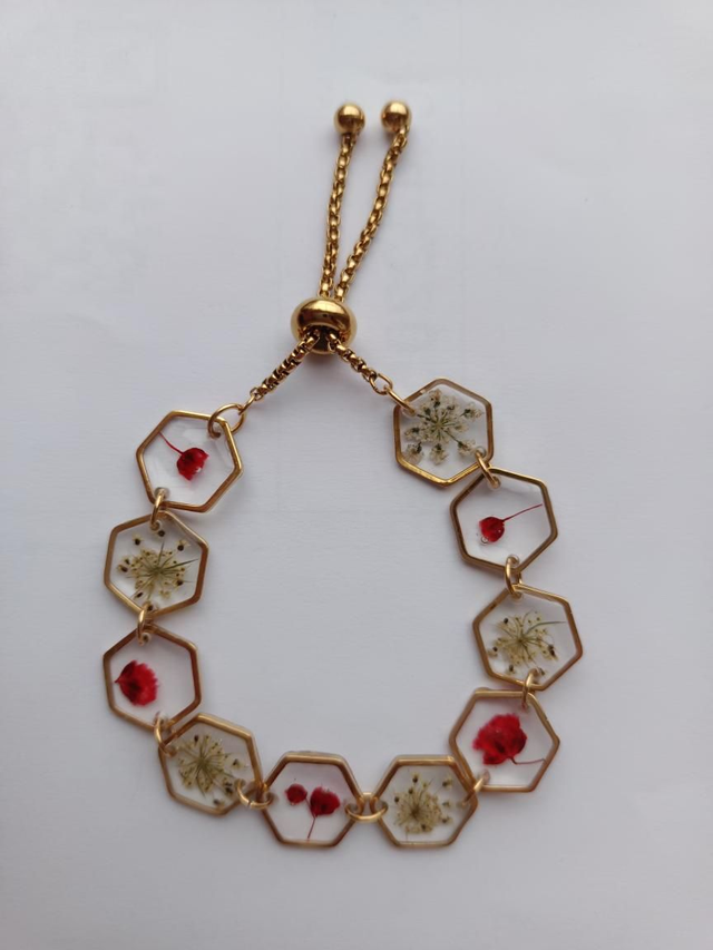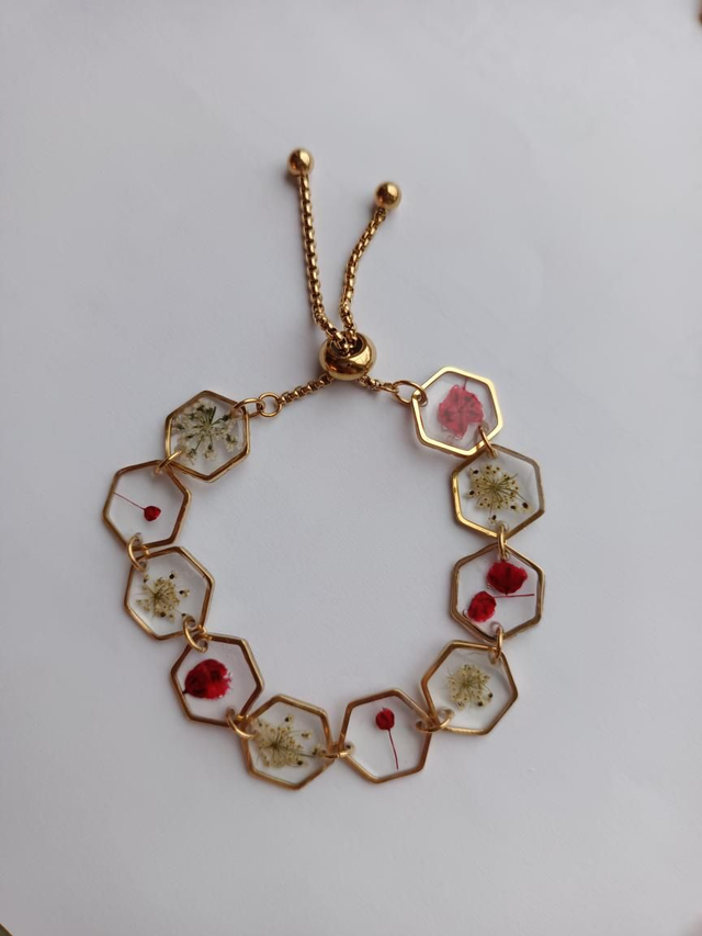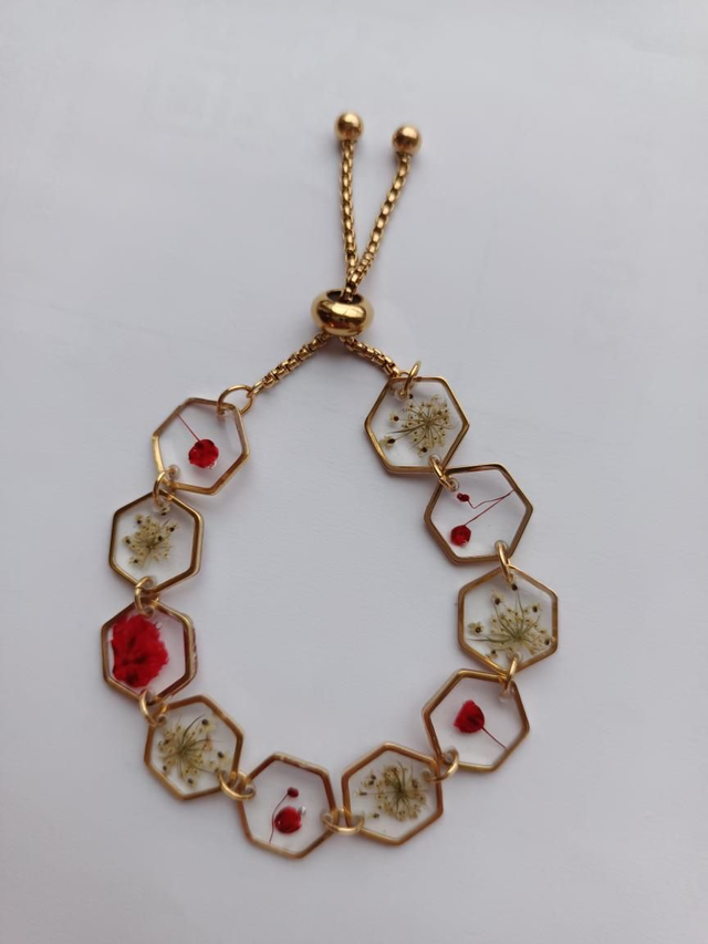 Bracelets avec fleurs séchées rouges et blanches