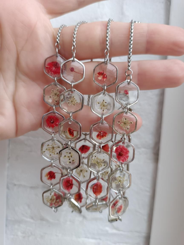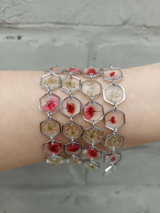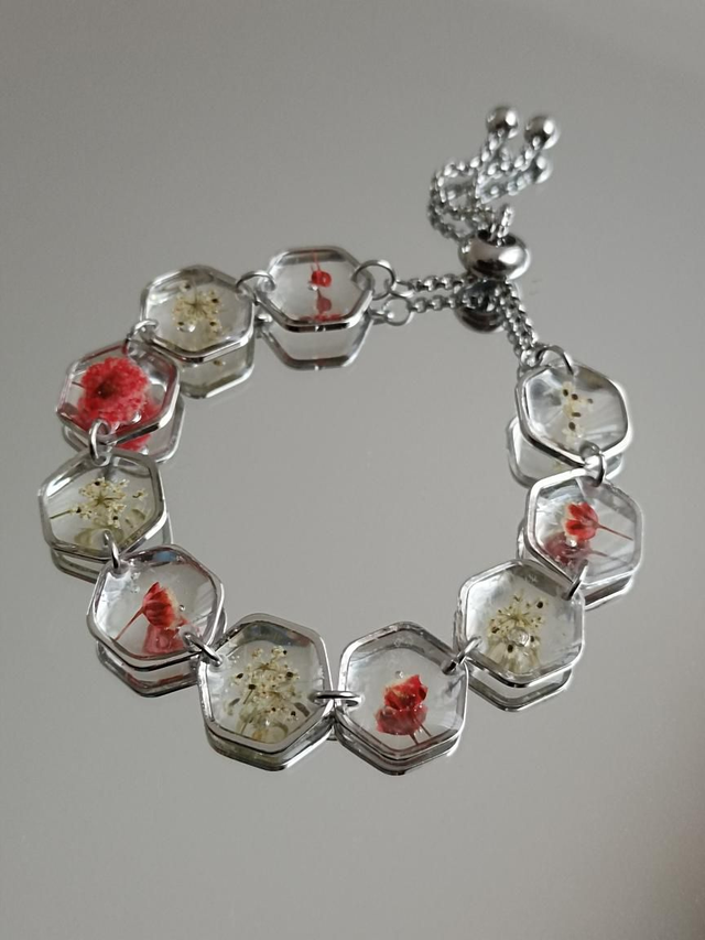 Bracelets avec fleurs séchées rouges et blanches