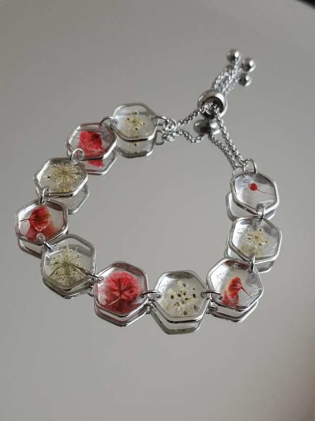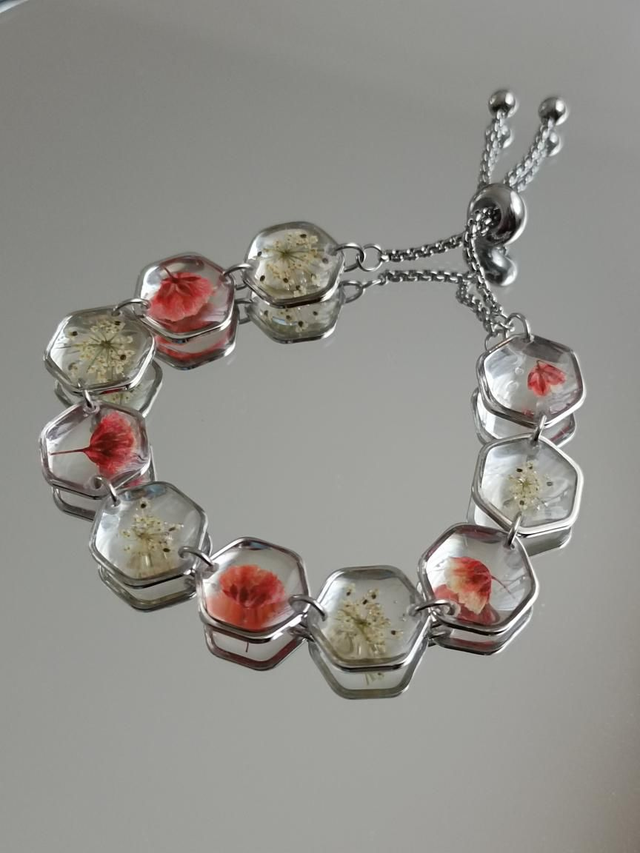 Bracelets Hexagones Fleurs Rouges et Blanches